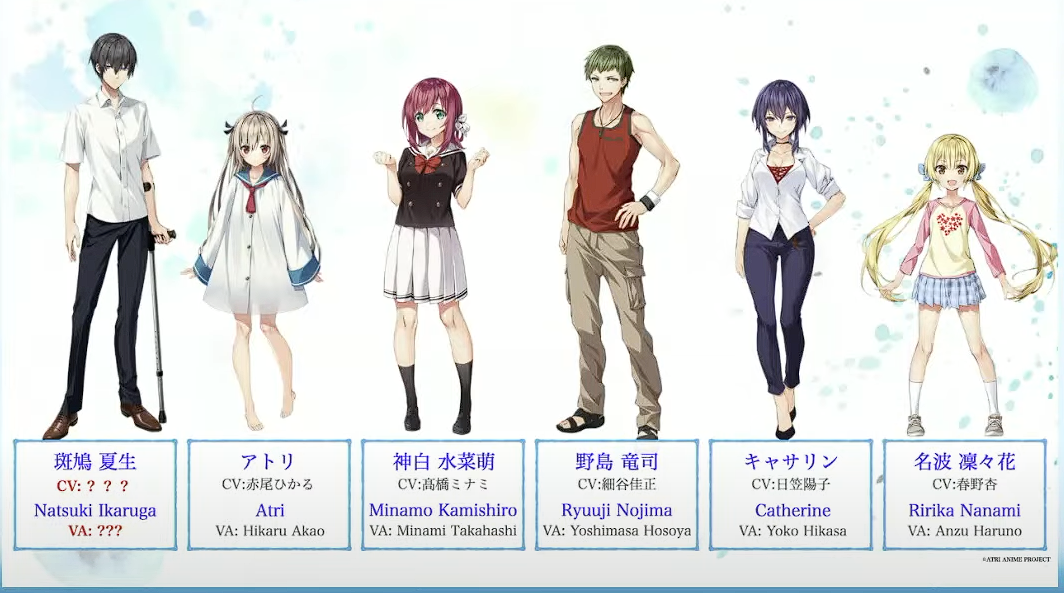 Durante el Aniplex Online Fest 2023 realizado el domingo, se presentó al reparto principal para el anime «ATRI: My Dear Moments«, qué se estrenará en algún momento del 2024.