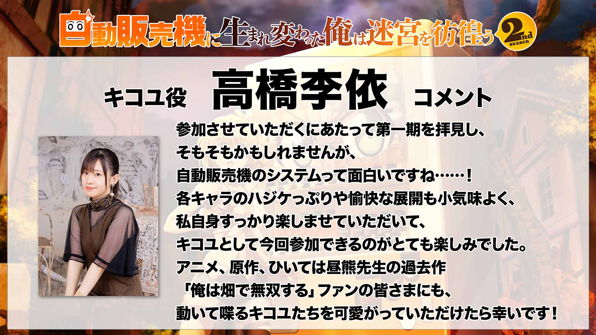 La producción para el anime «Jidōhanbaiki ni Umarekawatta Ore wa Meikyū ni Samayō» (Reborn as a Vending Machine, I Now Wander the Dungeon), compartió un nuevo video promocional y visual clave para la serie donde se reveló que su estreno será el próximo 2 de julio de este 2025.